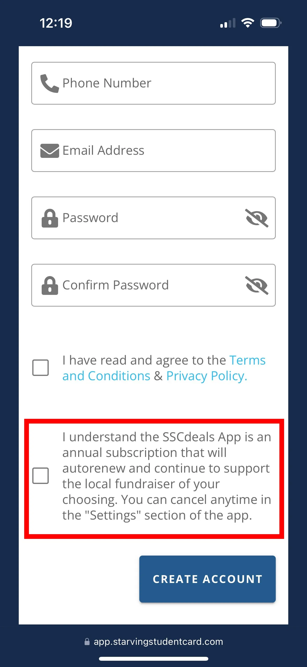 When you sign up for the Starving Student Card, we visibly let you know that this is a subscription based product that renews every 12 months.